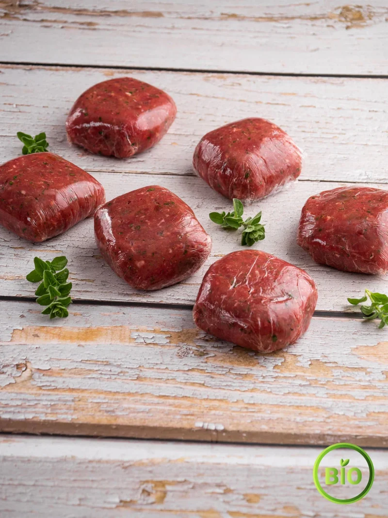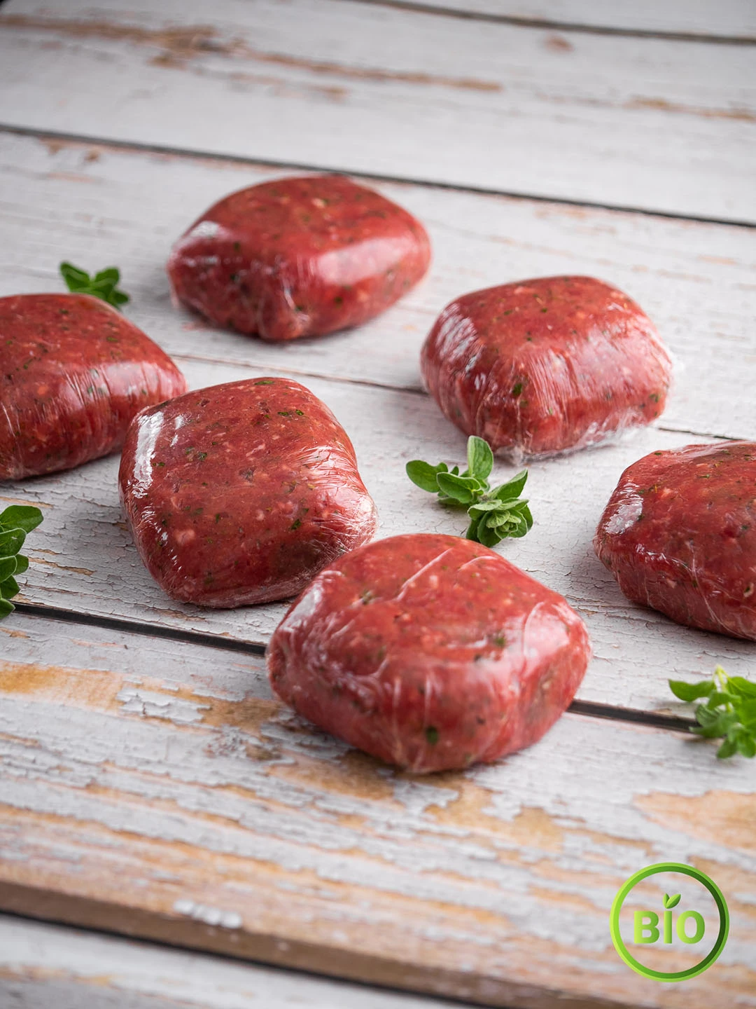 Εκλεκτός κιμάς από κιλότο βιολογικό μοσχάρι μόνο μοσχάρι με αγνά μπαχαρικά.